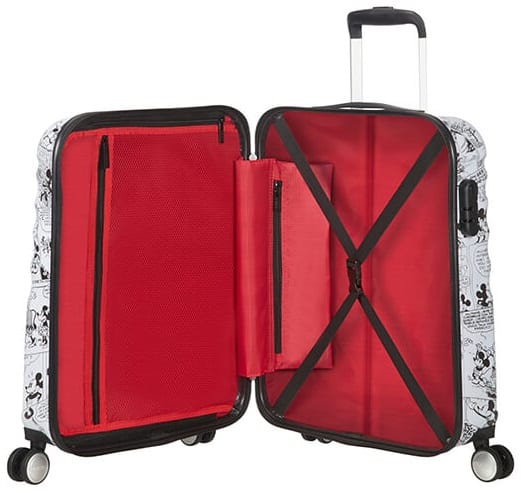 מזוודת דיסני קשיחה קטנה לעלייה למטוס של American Tourister (חברת הבת של סמסונייט) מסדרת Disney Comics היפהפייה והנוסטלגית – בגודל מושלם למרבית חברות התעופה (55-40-20 ס”מ, נהדר לRyanair, Wizzair ועוד), על 4 גלגלי סיליקון כפולים לנסיעה חלקה ושקטה, בעיצובים צעירים ושמחים של מיקי ומיני מאוס – נהדר גם לילדים וגם למבוגרים בינינו הרוצים להשאר ילדים