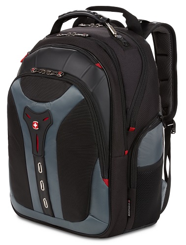 Swiss Wenger דגם Pegasus (המותג השוויצרי המקורי) – תיק גב גדול בעל גב אורתופדי למחשב נייד עד 17″, עמיד ומאסיבי, בעל נפח גדול ומספר רב של תאים (6 תאים), עם תחתית עשויה פוליאוריתן דוחה נוזלים ומשטח מתכוונן בטכנולוגית CaseBase לייצוב התיק – נהדר לעבודה נסיעות וטיולים ולסטודנטים