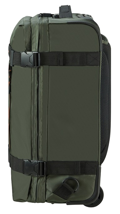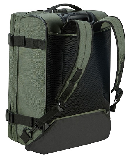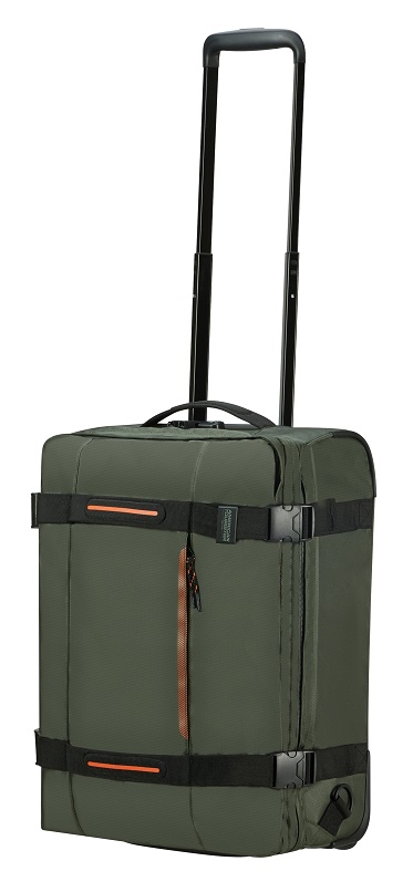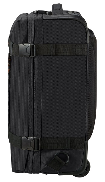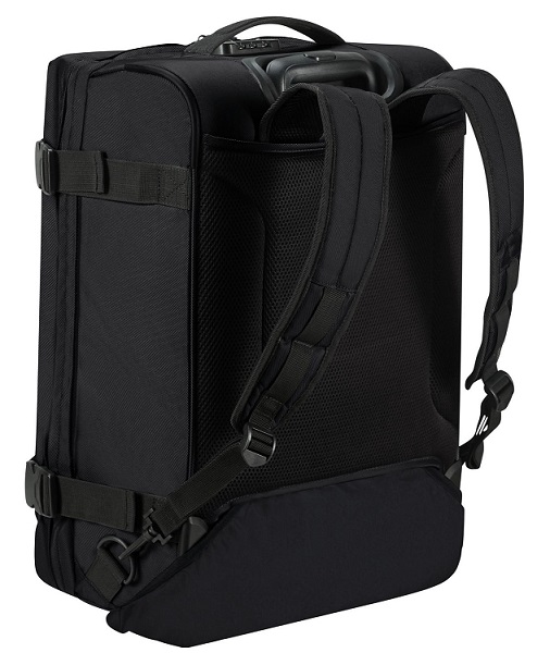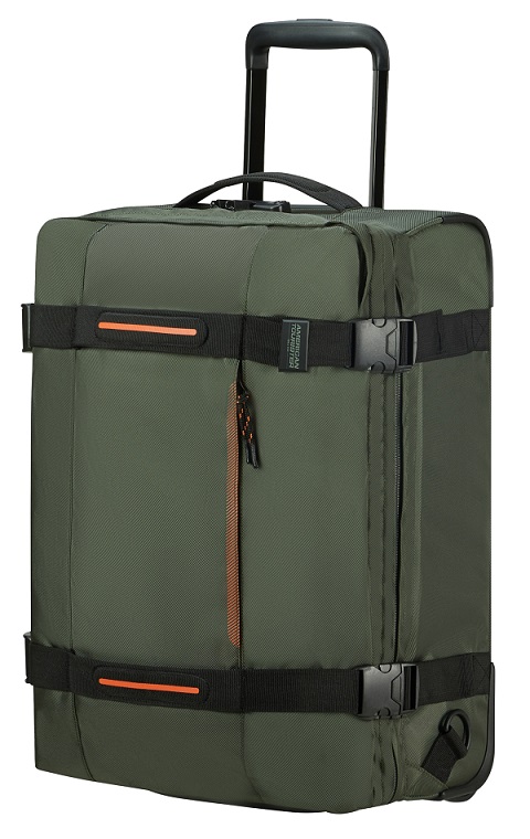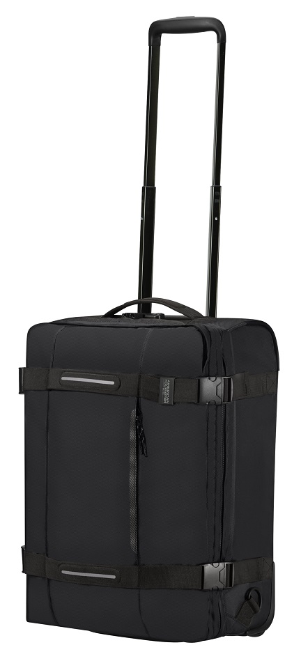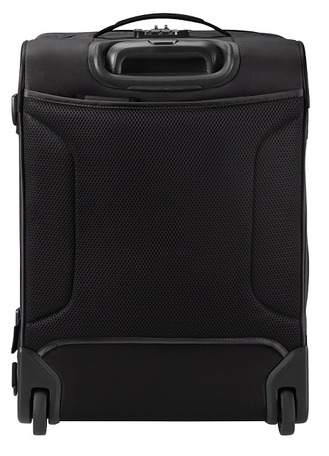 תיק נסיעות קטן (55X40X23 ס”מ) על גלגלים בגודל עליה למטוס של American Tourister, חברת הבת של Samsonite, מסדרת Urban Track – חזק וקל משקל (רק 2.5 ק”ג), בעל רצועות גב מרופדות אשר נשלפות מתא אחורי פתוח, גב מרופד לנוחות נשיאה מקסימלית, נוסע על שני גלגלי סיליקון לתנאי שטח ושתי רגליות ליציבות התיק בעמידה – מושלם לעליה למטוס